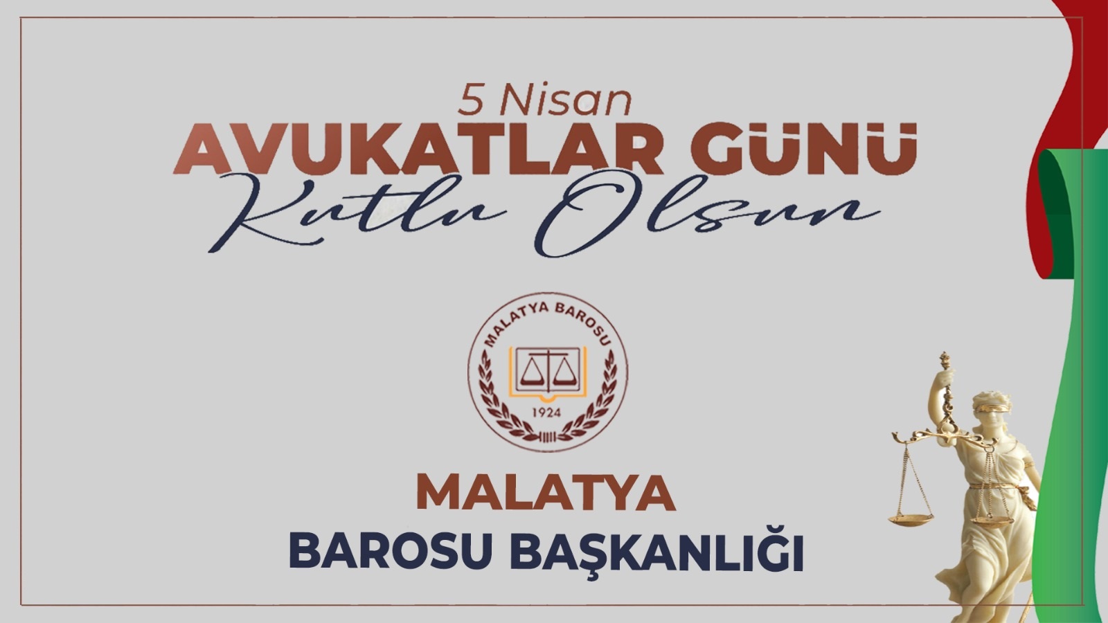 Bu Avukatlar gününün, Malatya Barosu’ nun kuruluşunun 100. Yılını doldurmuş olması vesilesi ile ayrı bir yeri olduğunu belirtmek isteriz. Mesleğimizin onur ve vakarının korunması, vatandaşlarımızın hak savunucusu olan avukatlarımızın mesleğini adil bir ortamda yürütebilmesi için mücadele edilmesi, mesleğe ve adalete yönelik tüm saldırılara göğüs gerilmesi, temel hak ve özgürlüklerin korunması noktasında kararlı olunması Baromuzun temel hedefi olup Malatya Barosu olarak 100. Yılımızı kutlamaktan şeref duyuyoruz.