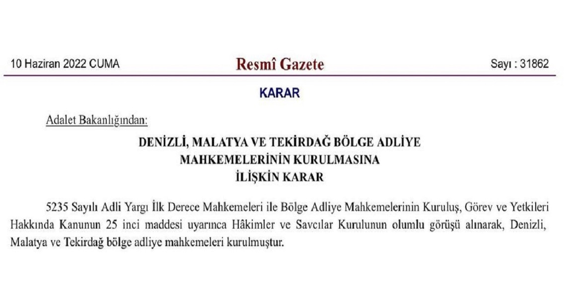 BÖLGE ADLİYE MAHKEMESİ AÇILMASI HK.