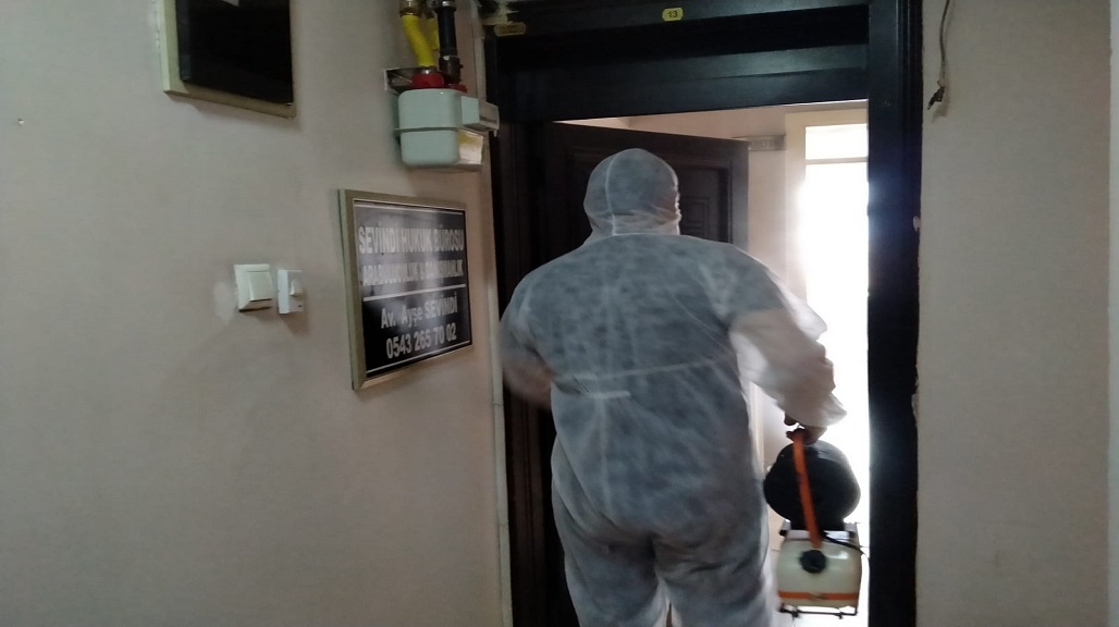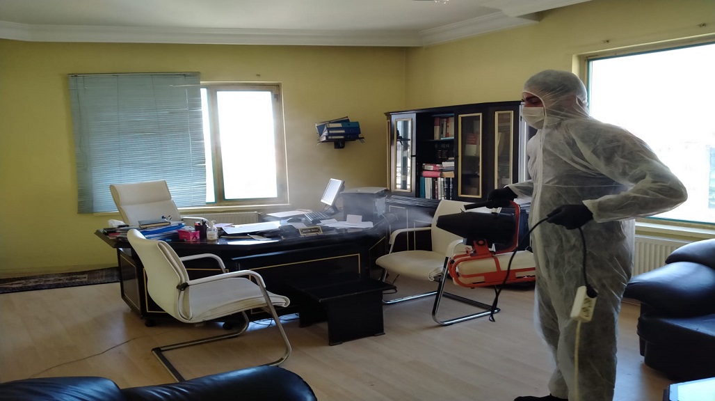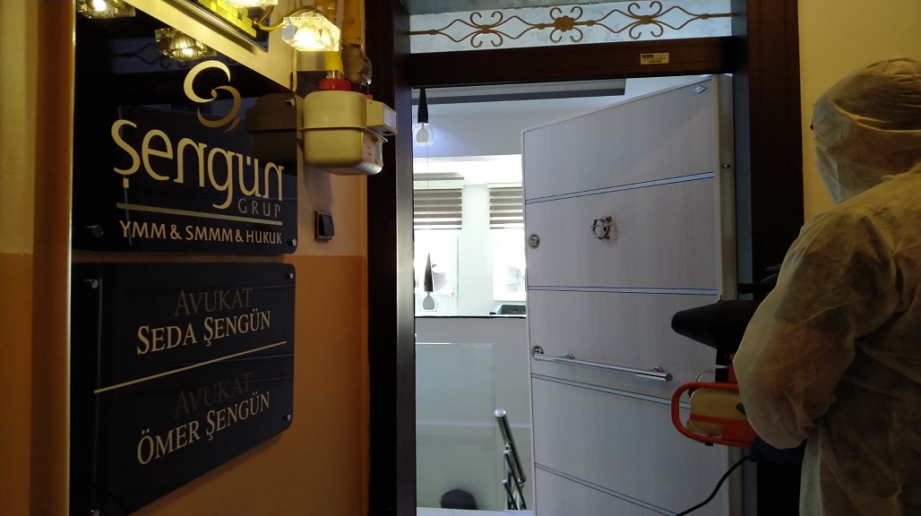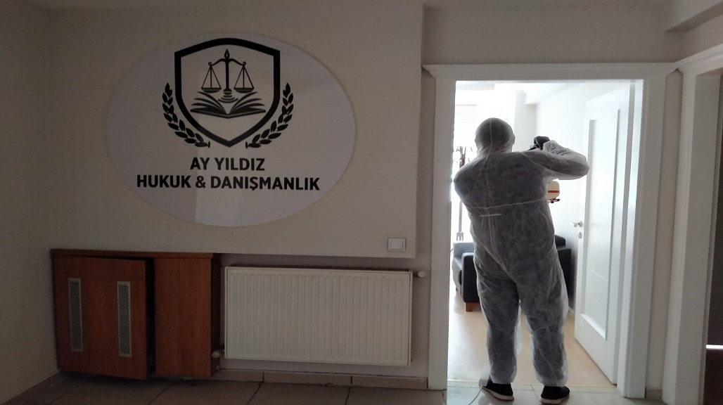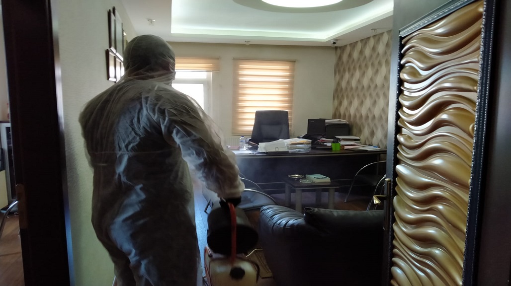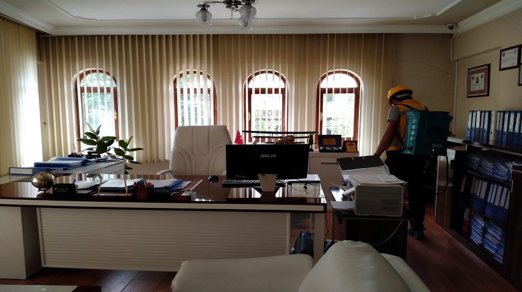 BÜROLARIMIZI DEZENFEKTE EDİYORUZ.