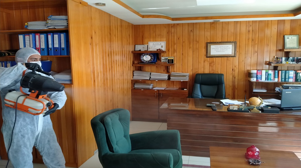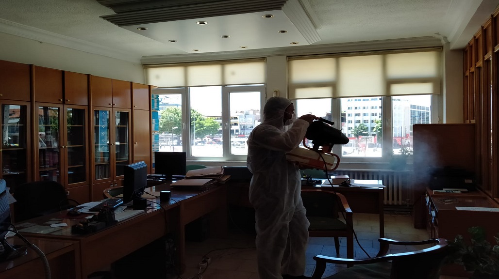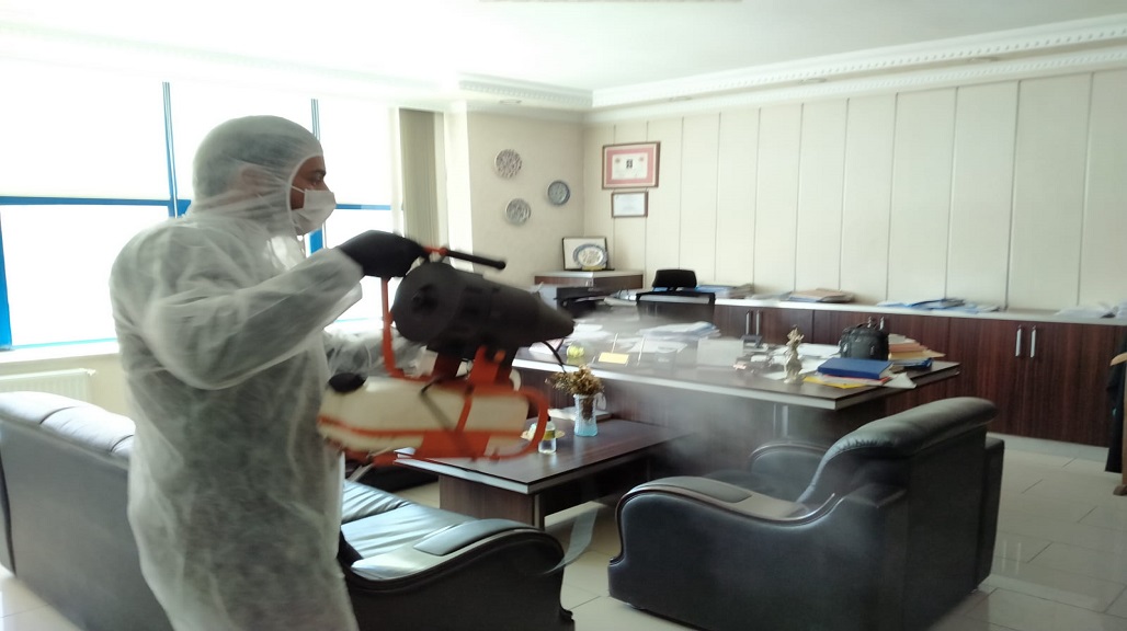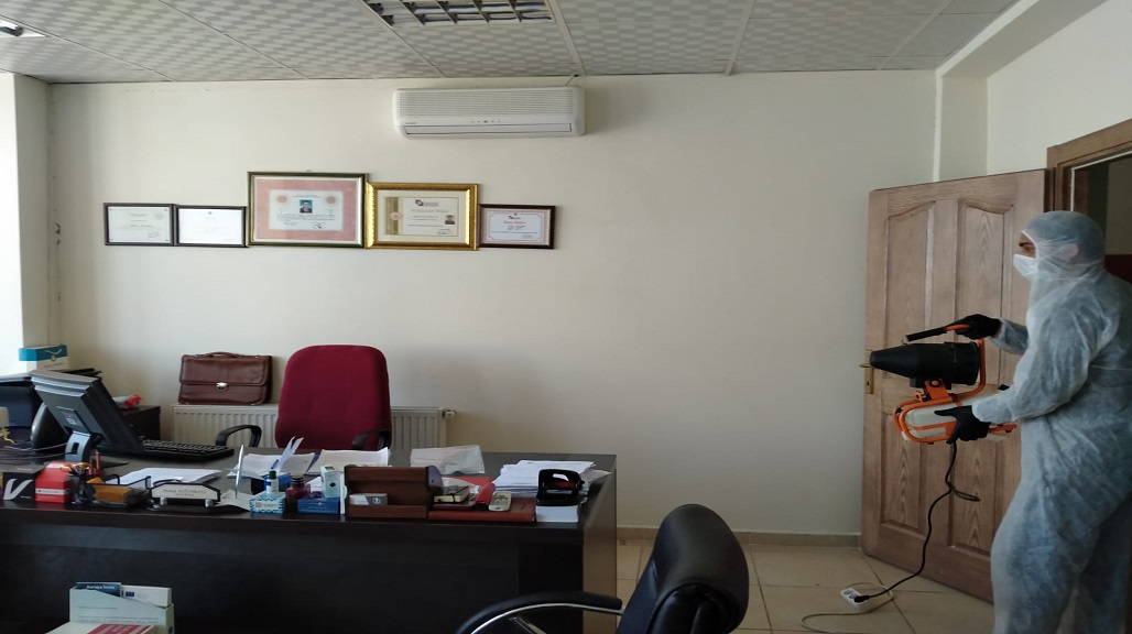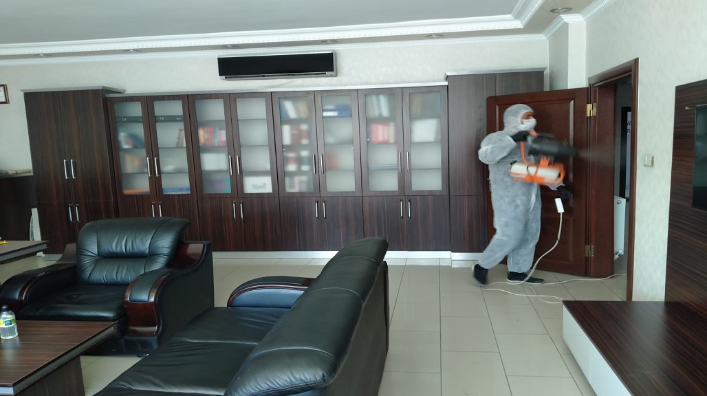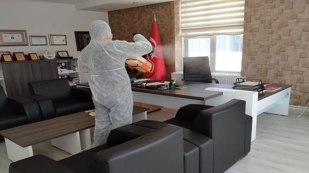 BÜROLARIMIZI DEZENFEKTE EDİYORUZ.