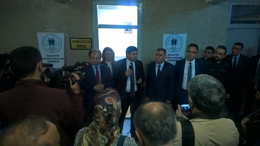 MALATYA ADLİYESİ ARABULUCULUK BÜROSU AÇILIŞI 14 NİSAN 2016 SAAT:15.00DE ARABULUCULUK DAİRE BAŞKANI SAYIN HAKAN ÖZTATAR'IN KATILIMIYLA GERÇEKLEŞTİRİLDİ.AÇILIŞ KONUŞMASINI YAPAN BARO BAŞKANIMIZ SAYIN AV.ENVER HAN HAYIRLI OLSUN DİLEKLERİYLE PLAKETİNİ TAKTİM ETTİ.AÇILIŞ SONRASI BARO SALONUNDA DÜZENLENEN KOKTEYLE HAKİMLER, SAVCILAR VE BAROMUZ ÜYELERİ YOĞUN İLGİ GÖSTERDİ.