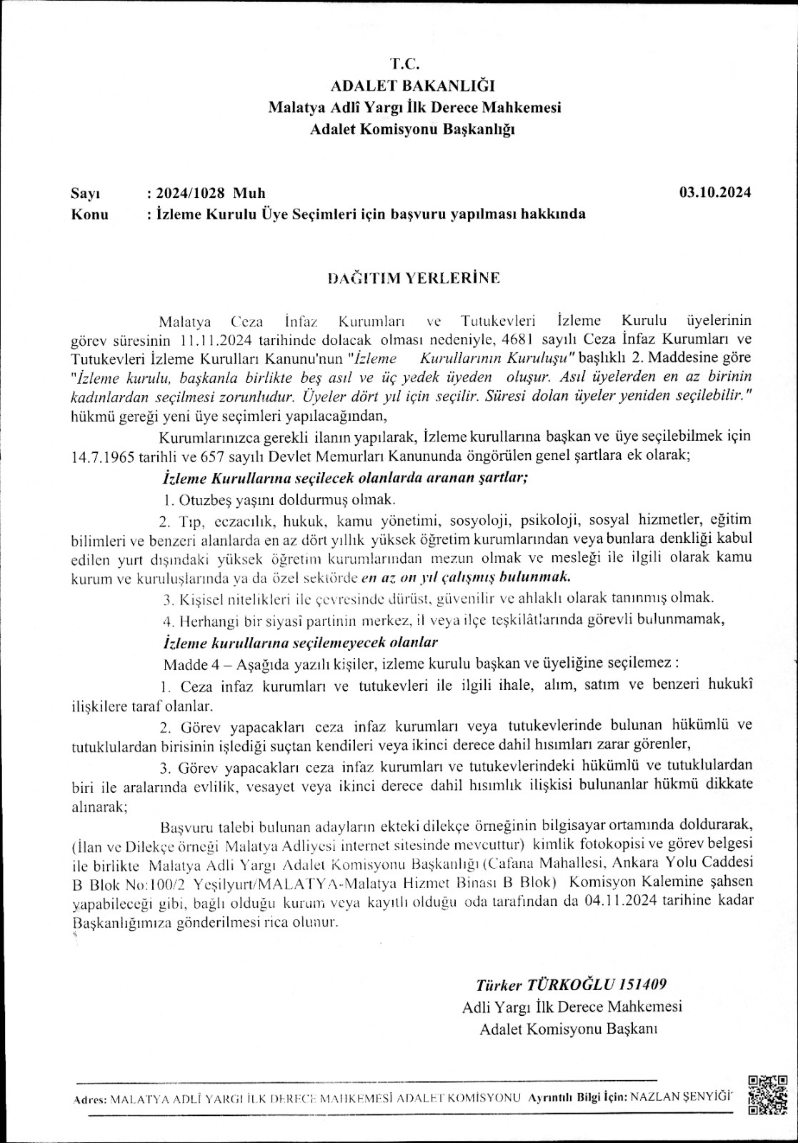 - İZLEME KURULU ÜYE SEÇİMLERİ İÇİN BAŞVURU YAPILMASI